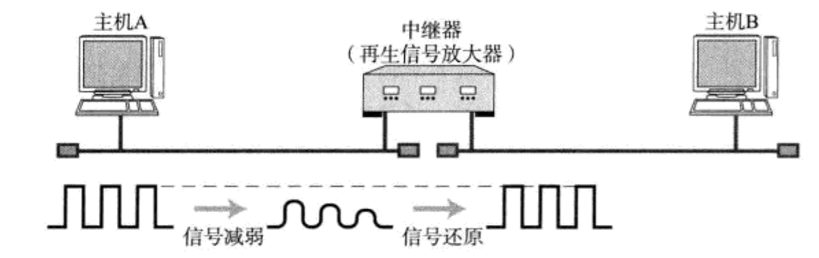 - 中继器是对减弱的信号进行放大和发送的设备。