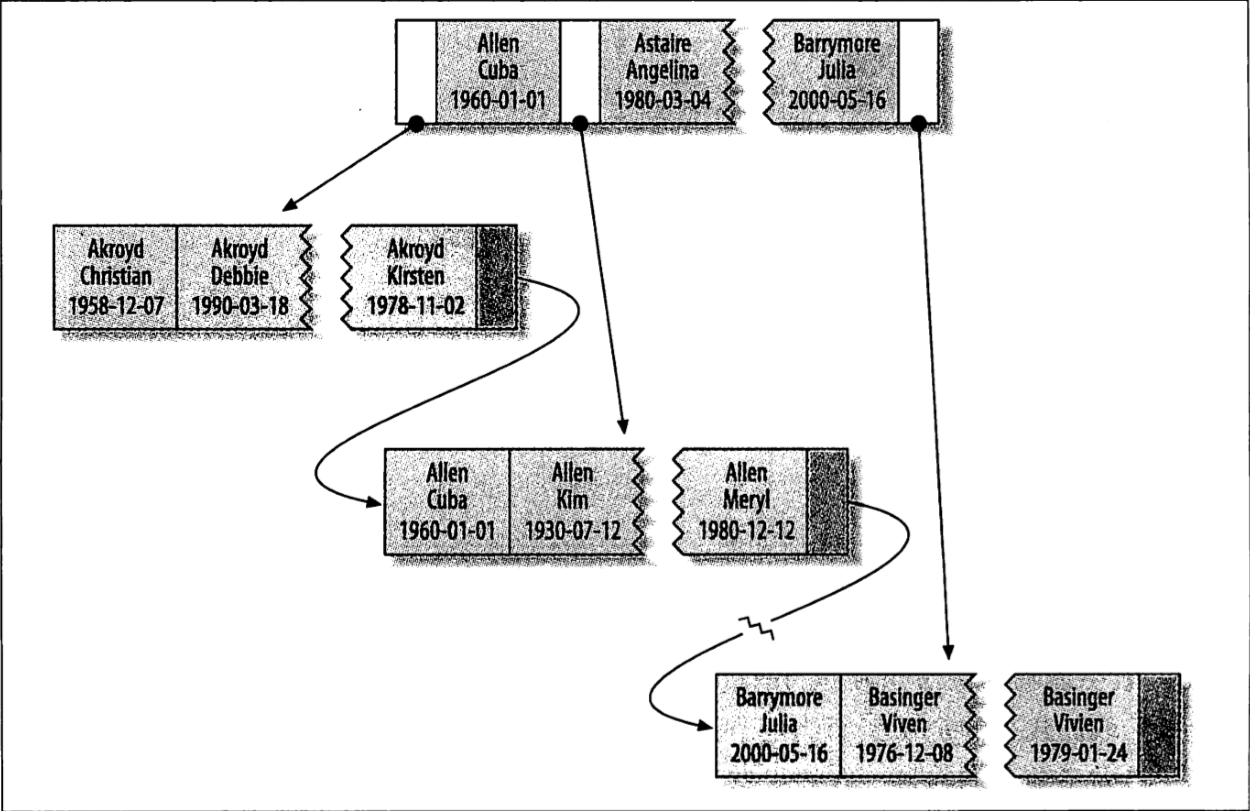 索引对多个值进行排序的依据是CREATE TABLE语句中定义索引时列的顺序。例如上图中,最后两个条目中,两个人的姓和名都一样,则根据他们的出生日期来排序。