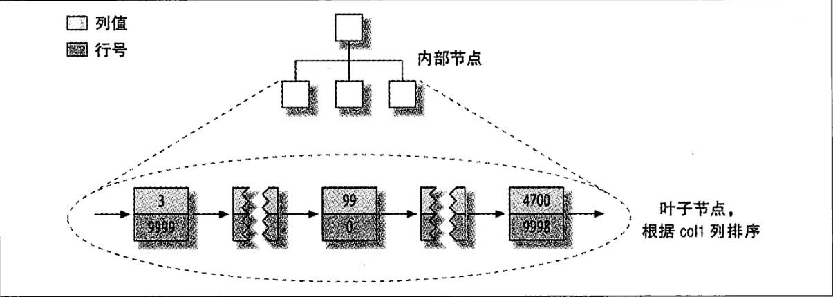 假设该表的主键取值为110000,并且数据在磁盘上的存储方式已经最优,但行的顺序是随机的;列col2的值是从1100之间随机复制,可能有很多重复值。