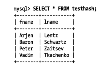 1 | CREATE TABLE testhash ( |