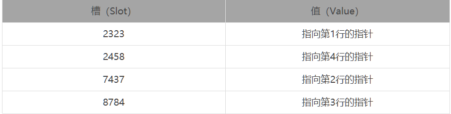 注意,每个槽的编号是顺序的,但是数据行不是。