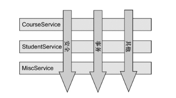 切面能够帮助我们模块化横切关注点,横切关注点可以被描述为影响应用多处的功能,下图直观的呈现了横切关注点的概念。