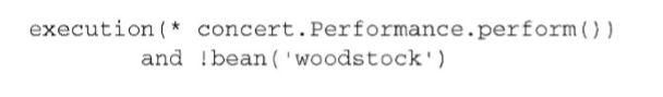 在此场景下,切面的通知会被编织到所有ID不为woodstock的bean中。