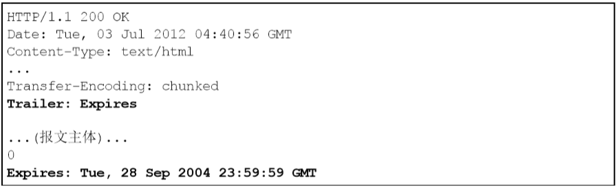 上图中,指定首部字段Trailer的值为Expires,在报文主体之后出现了首部字段Expires。