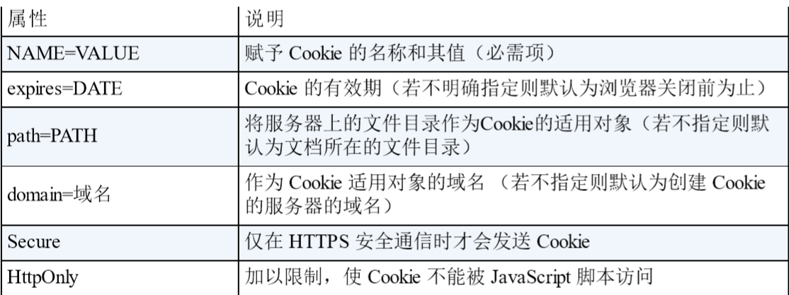 - Set-Cookie:下标列举了Set-Cookie的字段值